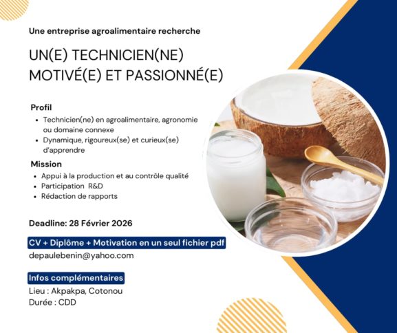 Pour Postuler, Ecrivez au 229 97211916(
